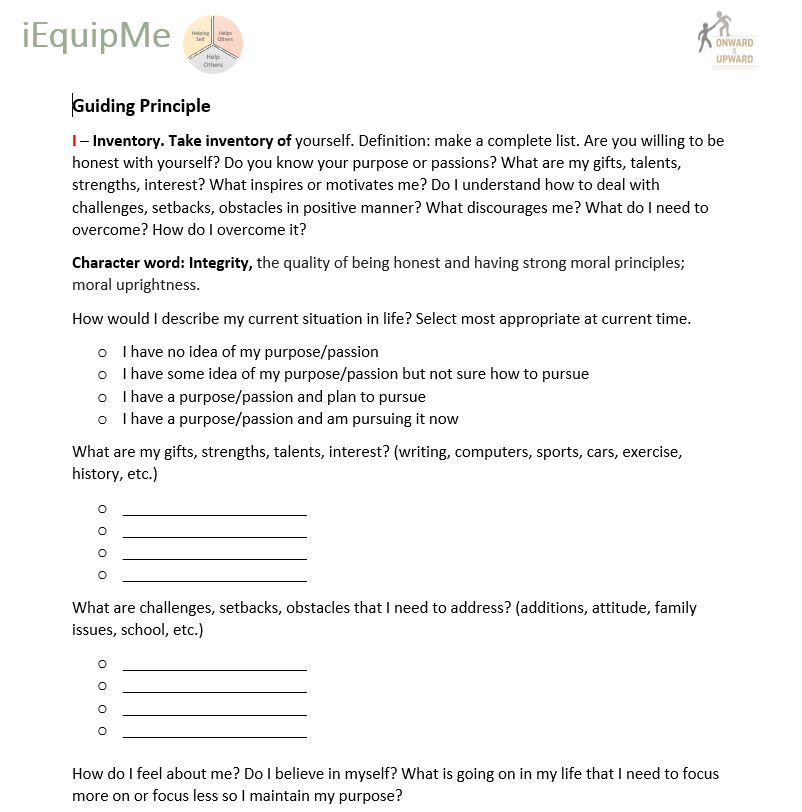 iEquipMe is mentor program to help youth and young adults use core principles to discover, plan, and pursue their purpose.